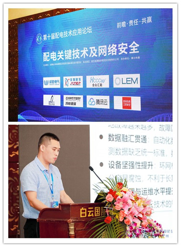 值得一提的是,在“配電關(guān)鍵技術(shù)與網(wǎng)絡(luò)安全的”分論壇上,威勝電氣智能配網(wǎng)事業(yè)部華北技術(shù)支持經(jīng)理楊志祥受主辦方邀請,作為演講嘉賓上臺發(fā)表了題為《10KV全密封智能分段環(huán)網(wǎng)柜開發(fā)與應(yīng)用》的演講,他的演講深度符合論壇主題,深入淺出的闡述了威勝電氣最新研制成果,獲得了與會領(lǐng)導(dǎo)、同仁的高度認可和贊譽,演講結(jié)束后,更是引來了眾多嘉賓前來我司展位一覽“智能分段環(huán)網(wǎng)柜”的廬山真面目。