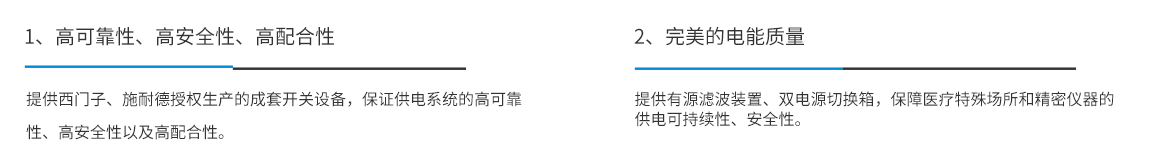 根據(jù)醫(yī)院配電系統(tǒng)的特殊性,我司設(shè)計了高可靠性、高安全性的配電系統(tǒng)。中低壓配電開關(guān)柜可選用施耐德或西門子授權(quán)柜;特殊醫(yī)療場所,如手術(shù)區(qū)等,可選用高可靠性的雙電源切換箱;針對精密醫(yī)療設(shè)備,對電能質(zhì)量要求特別高的場合,可選用具有完美濾波功能的壁掛式有源濾波裝置,節(jié)省占用空間,也方便后期改造擴容。