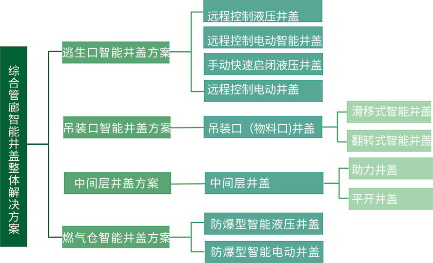 本方案解決了逃生口智能井蓋、中間層助力井蓋、吊裝口智能井蓋、燃氣倉智能井蓋(防爆型)等一系列產品的具體應用問題。