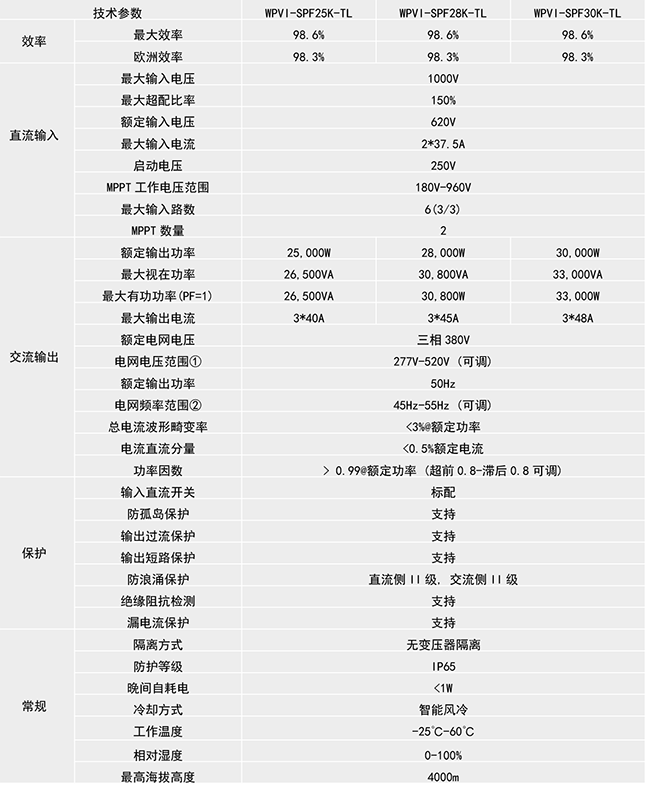 光伏逆變器WPVI-SPF25K/28K/30K-TL