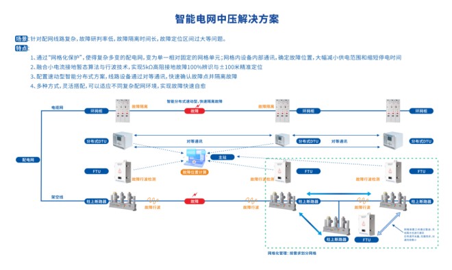 面對中壓配電網(wǎng)結(jié)構(gòu)復(fù)雜、故障處置效率低的難題,我公司全新推出的一體化智能自愈方案。系統(tǒng)采用“智能分區(qū)自治”理念,將復(fù)雜線路劃分為多個協(xié)同運行的智能單元,依托智能算法與高效通信,實現(xiàn)秒級故障定位、隔離和無感恢復(fù)供電,大幅提升供電可靠性。