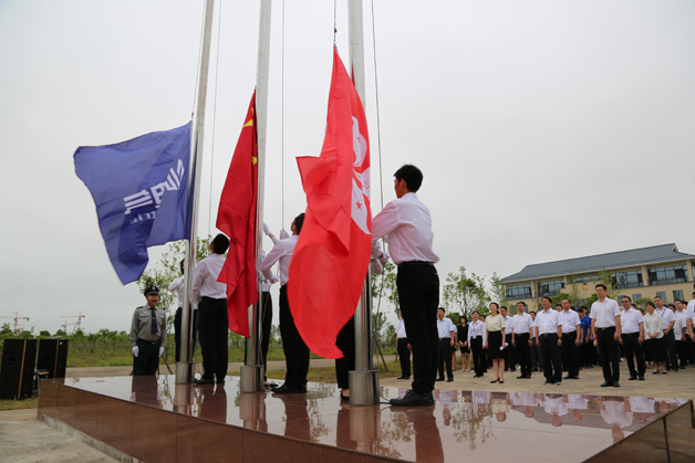 上午8時40分,威勝控股董事會吉主席、威勝控股本部領導、電氣董事會成員、及電氣全體同仁齊聚升旗廣場。