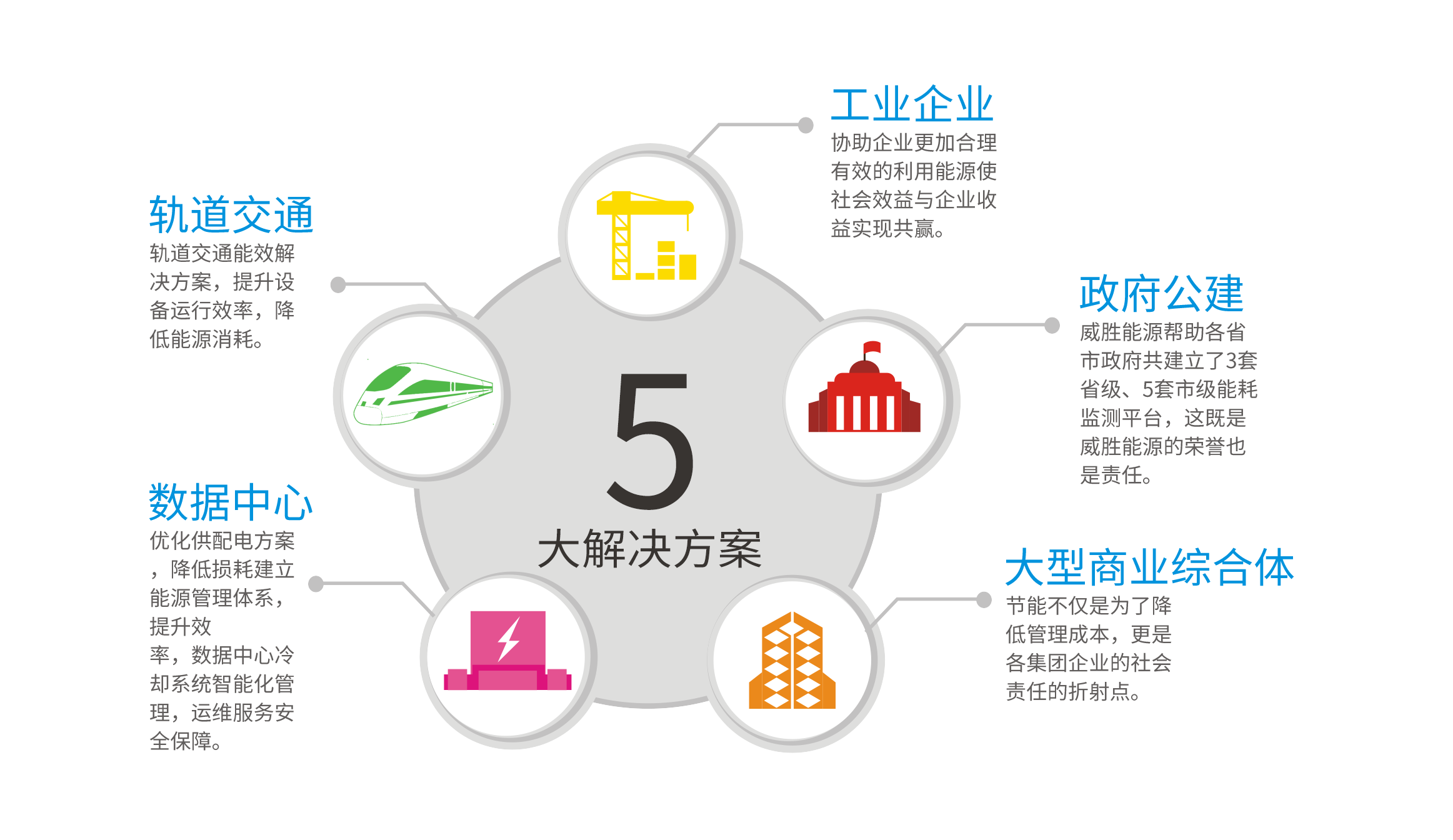 威勝的整體能效解決方案,是針對工業(yè)企業(yè)、軌道交通、數(shù)據(jù)中心、大型商業(yè)綜合體、政府公建等大型用電客戶構(gòu)建的一套用能解決方案。該方案包括水、電、氣、熱等多種能源種類,以能源購入、能源存儲、能源消耗等能源使用過程為導(dǎo)向的全生命周期用能管理方案,竭力幫助用戶減少能源損耗、提高能源利用率。